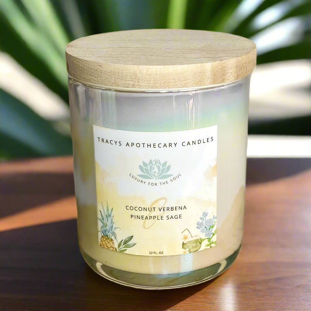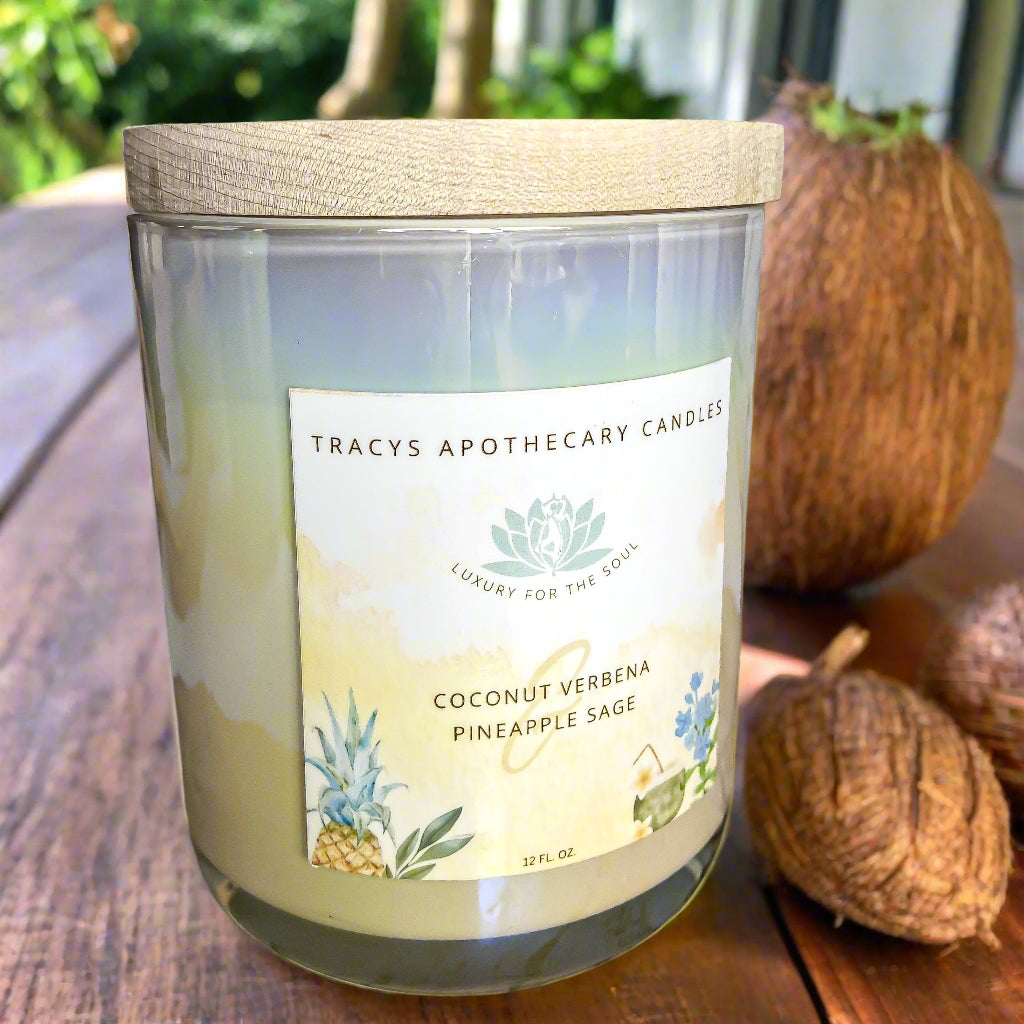 Our Coco Verbena and Pineapple Sage scent is a tropical and herbaceous fusion, creating a uniquely refreshing and vibrant aroma. The sweet and creamy essence of coconut blending with the juicy, tropical notes of pineapple combination forms a luscious and exotic element.